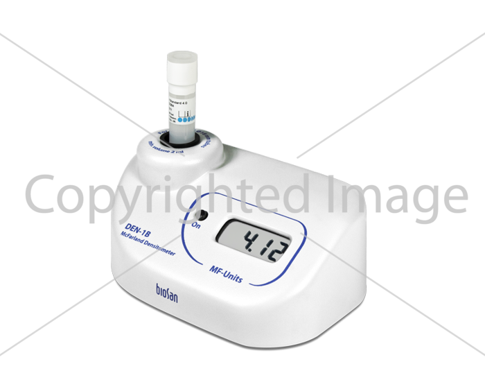 Денситометр DEN-1B предназначены для измерения мутности клеточных суспензий в пределах диапазона 0,0–6,0 единиц МакФарланда (McF) (0 – 180x107клеток/мл).