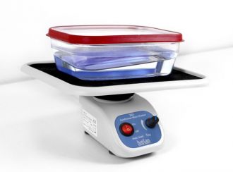 Нескользящий термоустойчивый силиконовый коврик, расположенный на платформе мини-шейкера, обеспечивает устойчивое положение сосудов.