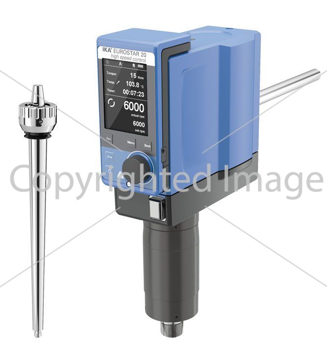 Высокоскоростная лабораторная мешалка оборудованная съёмным беспроводным контроллером и цифровым TFT-дисплеем, автоматическим регулированием частоты вращения с помощью микропроцессора в диапазоне скоростей от 0/150 до 6000 об / мин. Мешалка оснащена интерфейсами RS 232 и USB для контроля и документирования всех параметров и обновления микропрограммного обеспечения. Для измерения изменений вязкости предусмотрен встроенный индикатор отслеживающий крутящий момент. Встроенный вал прецизионной мешалки имеет длину 280 мм и максимальную глубину погружения 220 мм.